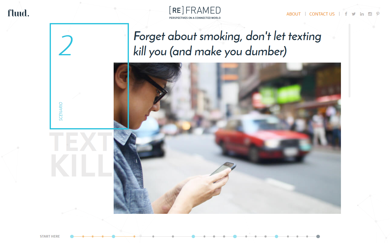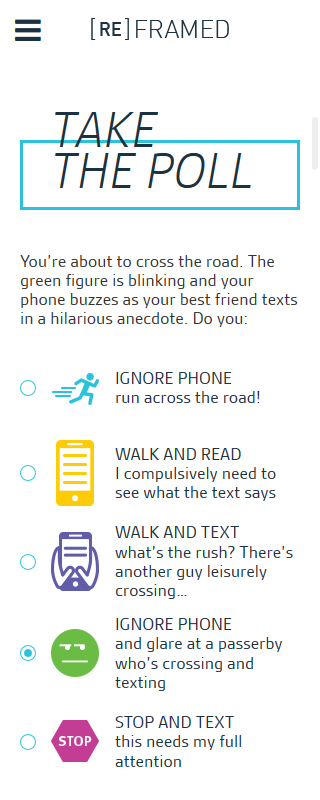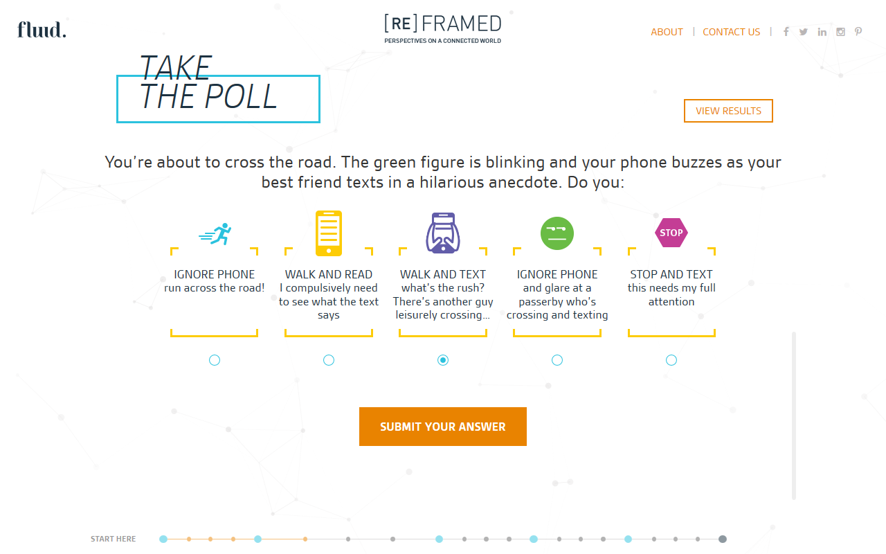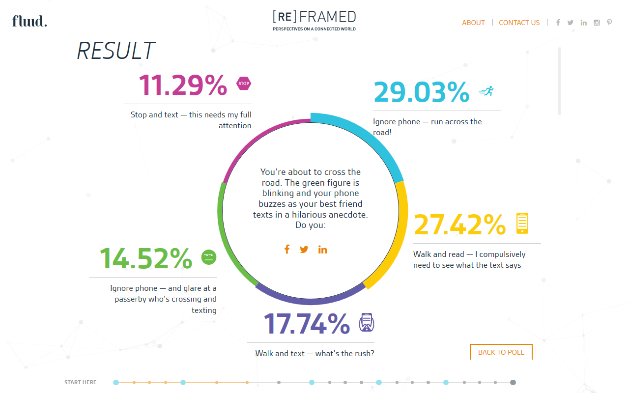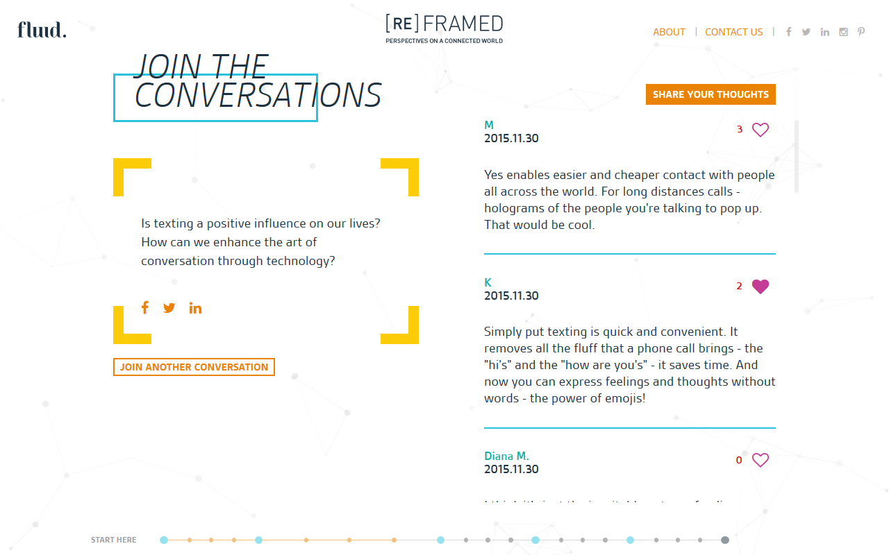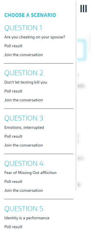Campaign website designed to take the user on a journey through various challenges in the modern digital age. See how users react to thought-provoking problems and situations and participate in discussions driven by insights.
